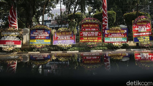 Jakarta - DPRD DKI Jakarta kebanjiran kiriman karangan bunga. Sebagian bertuliskan dukungan hak interpelasi terhadap Gubernur DKI Jakarta Anies Baswedan soal Formula E.