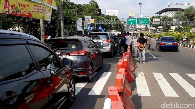 Puncak - Satgas COVID-19 Kabupaten mulai melakukan ujicoba sistem ganjil genap untuk kendaraan menuju kawasan wisata Puncak, Bogor, Jum'at (3/9/2021).