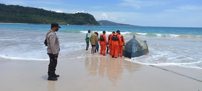 Banda Aceh - Sebuah kapal ditemukan dalam kondisi telungkup atau terbalik di pantai Pulo Nasi, Aceh. Ada mayat tanpa kepala di kapal itu.
