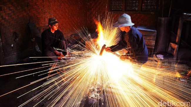 Di sebuah bangunan berukuran 6x4 meter yang disebut besalen, dua pria tengah menempa besi. Masing-masing pria yang berusia di atas 40 tahun itu terlihat mengenakan koko hitam namun satu di antaranya terlihat memakai ikat di kepalanya.