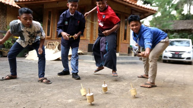 Banyuwangi - Permainan tradisional gasing bambu masih dilestarikan oleh Kampoeng Batara. Permainan ini masih dilestarikan sebagai sarana edukasi agar tidak kecanduan gawai.