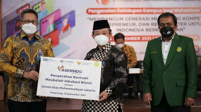 PT Asuransi Kredit Indonesia (Askrindo) memberikan bantuan CSR berupa meubelair set untuk Universitas Muhammadiah Jakarta (UMJ) untuk mendukung perkuliahan di kampus tersebut.