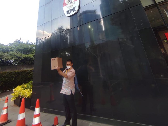 Foto: Ketua Wadah Pegawai (WP) KPK, Yudi Purnomo membawa kardus usai membersihkan barang-barang pribadi dari meja kerjanya. Yudi merupakan salah satu pegawai yang lolos TWK sebagai asesmen untuk alih status menjadi aparatur sipil negara (ASN). (Azhar Bagas Ramadhan/detikcom)