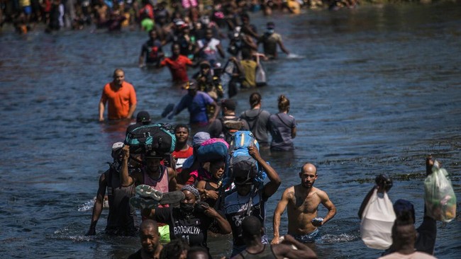 Amerika Serikat - Ribuan warga Haiti tinggalkan negara asal untuk menuju AS. Demi bisa tiba di sana, mereka ramai-ramai menyeberangi sungai di perbatasan Meksiko-AS. Ini fotonya.