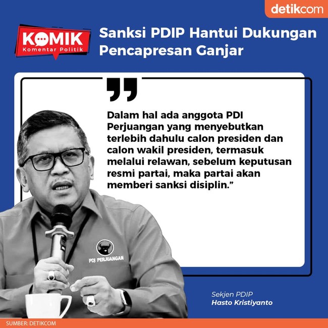 Sekjen PDIP Hasto Kristiyanto menegaskan bahwa anggota PDIP tidak boleh menyebutkan dulu capresnya. Jika melanggar, maka sanksi akan dijatuhkan.
