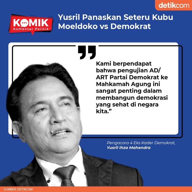 Jakarta - Yusril Ihza Mahendra mengajukan gugatan AD/ART Partai Demokrat era Agus Harimurti Yudhoyono (AHY). Langkah ini memanaskan perseteruan Moeldoko dan Demokrat.