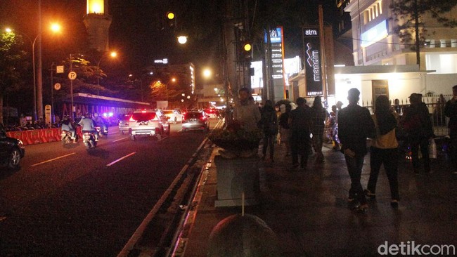 Bandung - Kawasan Asia Afrika, Kota Bandung dipadati warga malam ini. Kerumunan warga terlihat mulai di area Gedung Merdeka, Masjid Raya Bandung hingga Jalan Braga.