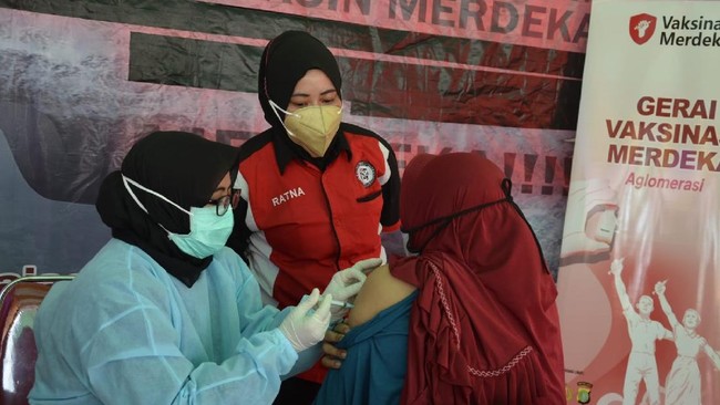 Jakarta - Tingginya minat masyarakat akan vaksinasi di Kota Bekasi kembali jadi perhatian guna mencapai herd immunity. Aparat kepolisian pun turun tangan dalam hal ini.