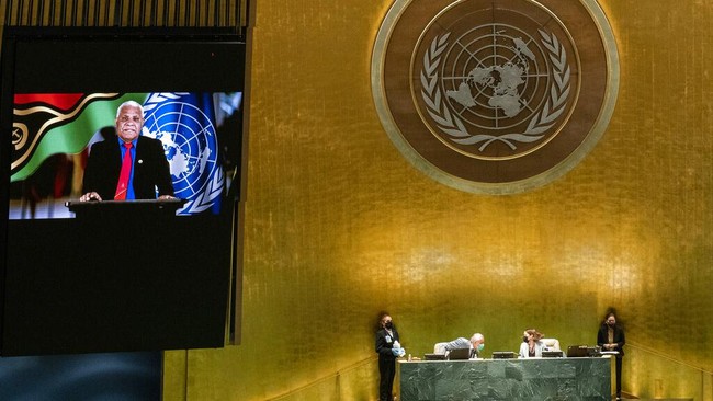 Jakarta - Vanuatu kembali bicara soal dugaan pelanggaran HAM di Papua. Hal itu diungkapkan PM Republik Vanuatu Bob Loughman Weibur dalam pidatonya di Sidang Umum PBB.