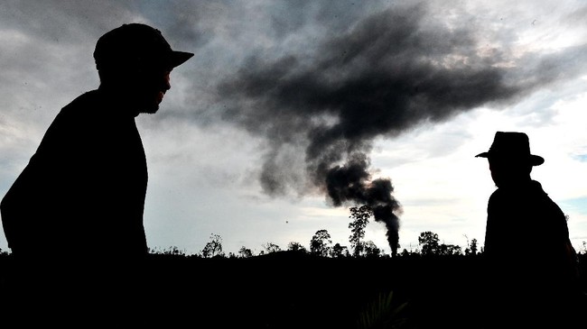Jambi - Sumur minyak ilegal di kawasan Batanghari, Jambi, terbakar. Kepulan asap tampak terlihat keluar dari sumut minyak ilegal tersebut.