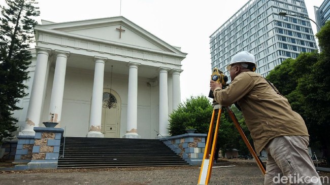 Jakarta - GPIB Immanuel Jakarta tengah direvitalisasi, Senin (27/9/2021) Revitalisasi dilakukan dalam rangka pengembangan destinasi wisata religi Pemprov DKI Jakarta.