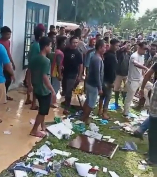 Aceh - Sejumlah warga mengamuk di lokasi vaksinasi Corona di Pangkalan Pendaratan Ikan (PPI) Ujong Serangga, Kecamatan Susoh, Aceh Barat Daya.
