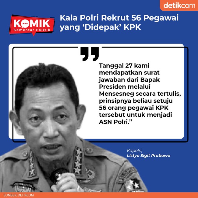 Kapolri Jenderal Listyo Sigit Prabowo mengatakan bahwa restu itu disampaikan melalui Mensegneg. Jokowi setuju jika 56 pegawai KPK yang tak lulus TWK itu direkrut Polri.