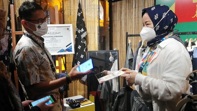 Solo - Menparekraf Sandiaga Uno didampingi Wali Kota Solo Gibran Rakabuming Raka meninjau UMKM dalam event Apresiasi Kreasi Indonesia di De Tjolomadu, Jumat (8/10)