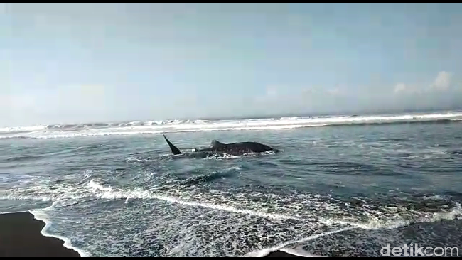 Lumajang - Seekor hiu tutul dengan panjang 4 meter terdampar di pantai Drajid desa Wotgalih kecamatan Yosowilangun Lumajang. Ini foto-fotonya!