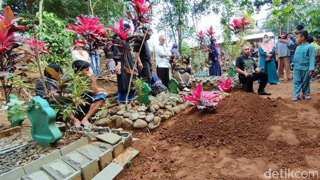 Jenazah Kansa (13) dimakamkan di tempat pemakaman Desa Cimari, Kecamatan Cikoneng, Kabupaten Ciamis, Jawa Barat, Sabtu (16/10/2021) pagi.