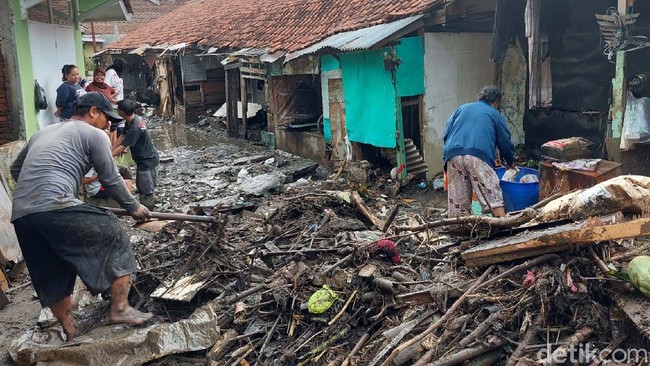 Bandung - Banjir menerjang pemukiman di Kelurahan Cijerah, Kecamatan Bandung Kulon, Kota Bandung, Selasa (2/11/2021) malam. Begini dampaknya.
