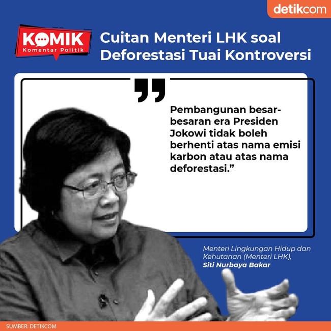 Jakarta - Cuitan Menteri LHK, Siti Nurbaya Bakar soal pembangunan era Presiden Jokowi tak boleh berhenti atas nama deforestasi tuai kontroversi. Siti pun dikritik.