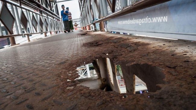JPO di Cilegon Rusak Parah hingga Berlubang