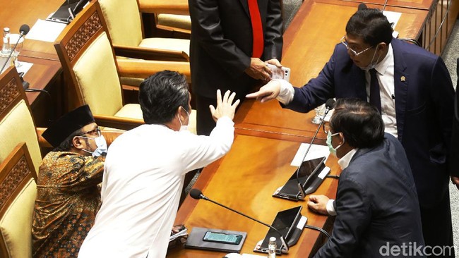 Ketua Fraksi PDIP Utut Adianto bereaksi dengan menghampiri Fahmi Alaydroes yang sebelumnya menyindir Puan Maharani saat rapat paripurna pengesahan Jenderal Andika Perkasa sebagai Panglima TNI.