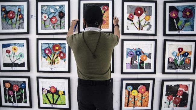 Jakarta - Lukisan yang dipamerkan di Aula Kelurahan Rawamangun ini berbeda dari biasanya. Bukan dari tinta ataupun cat warna, melainkan limbah sampah plastik.