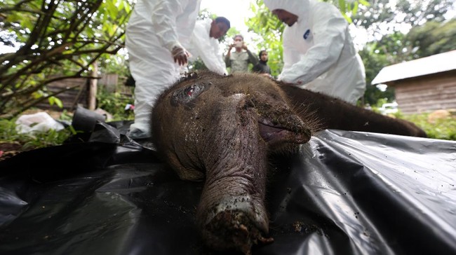 Aceh - Seekor anak gajah di Aceh mati dalam perawatan di Pusat Latihan Gajah (PLG) di Saree, Aceh Besar. Belalai satwa itu putus akibat kena jerat.