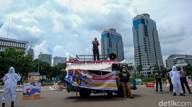 Jakarta - Koalisi Masyarakat Peduli Kesehatan (KOMPAK) gelar aksi tolak rokok di silang Monas dekat patung kuda, Jakarta. Beragam poster bahaya rokok pun warnai aksi itu.