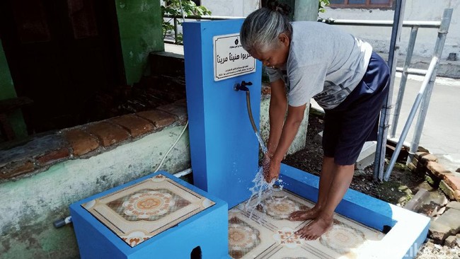Klaten - Warga di Klaten mendapatkan tempat cuci tangan gratis yang diberikan oleh yayasan dari Abu Dhabi Uni Emirat Arab. Selain itu, warga juga diberikan pompa air.