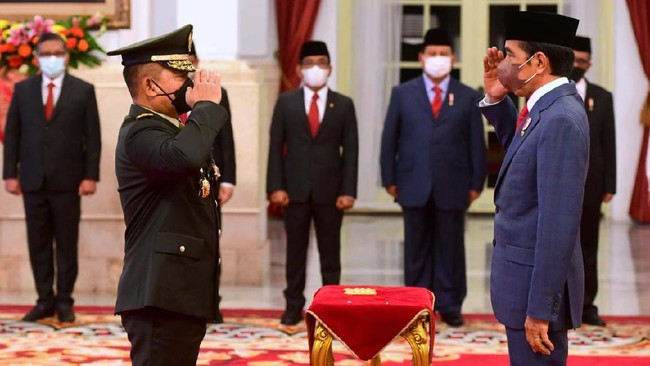 Jakarta - Presiden Joko Widodo resmi melantik Letjen Dudung Abdurachman menjadi Kepala Staf Angkatan Darat (KSAD). Pelantikan digelar dengan protokol kesehatan ketat.