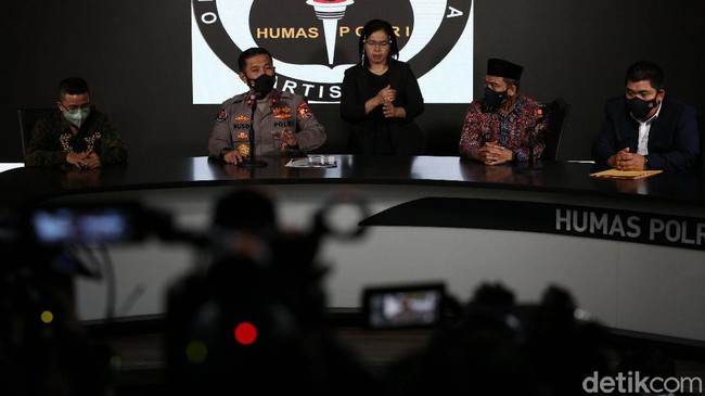 Jakarta - Polri memberikan keterangan pers terkait penangkapan Ustaz Farid Okbah dan Zain An Najah. Polisi mengungkap keduanya memiliki peranan di Jamaah Islamiyah (JI).