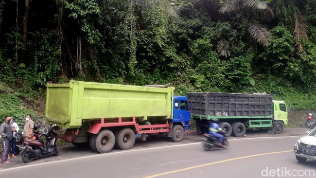 Motor Yana Supriatna (40) ditemukan oleh keluarganya tepat di lokasi dua truk yang terparkir di kawasan Cadas Pangeran, Sumedang, Jawa Barat. (Nur Azis/detikcom).