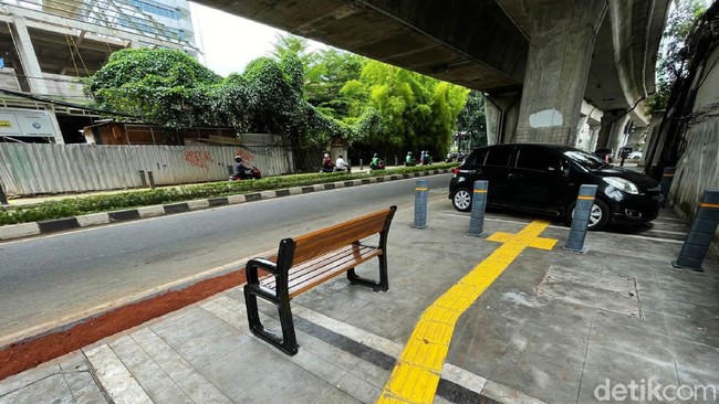 Jakarta - Pembangunan trotoar di Jalan Wolter Monginsidi, Kebayoran Baru, Jakarta telah rampung. Namun sayang, trotoar itu dijadikan sebagai lahan untuk parkir kendaraan.