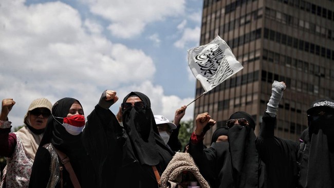 Jakarta - Sejumlah perempuan yang tergabung massa aksi Reuni 212 melakukan orasi di kawasan Sarinah, Jakarta Pusat, Kamis (2/12). Padahal aksi tersebut tak dapat izin.