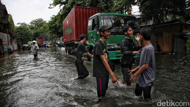 Jakarta - Jalan Lodan, Ancol, lumpuh karena banjir rob. Selain membuat sejumlah kendaraan mogok, akibat banjir rob ini kegiatan bongkar muat Sunda Kelapa juga tersendat.