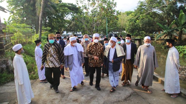 Lombok - Menko PMK Muhajir Effendy menyambangi Pondok Pesantren Nurul Hakim di Lombok Barat. Ia pun disambut meriah oleh ratusan santri yang telah menunggunya.