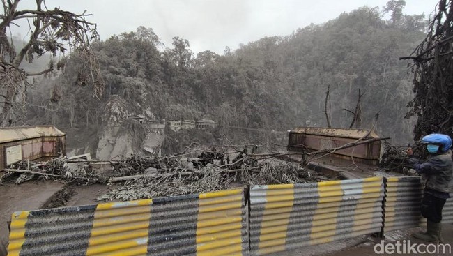 Lumajang - Jembatan Gladak Perak yang hubungkan Lumajang-Malang putus akibat erupsi Gunung Semeru. Warga pun berdatangan untuk melihat langsung kondisi jembatan itu.