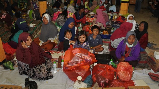 Lumajang - Sejumlah warga yang terdampak erupsi Gunung Semeru mengungsi ke tempat yang lebih aman. Salah satunya di Balai Desa Sumberwuluh, Lumajang.
