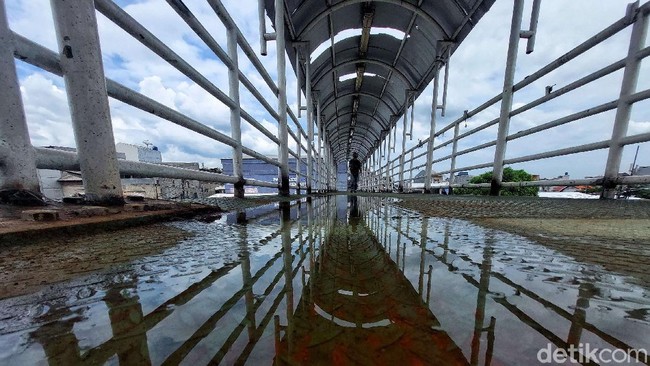 Jakarta - Kondisi JPO di Jalan Letjen Suprapto, Johar, Jakarta, sungguh memperihatinkan. Bagian atap JPO itu bolong, seperti terlihat pada Senin (29/11) dan Senin (6/12).