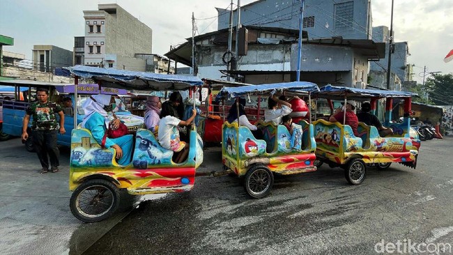 Jakarta - Odong-odong jadi hiburan murah untuk anak-anak. Di Kampung Pulo, Jakarta Timur, odong-odong juga jadi transportasi alternatif emak-emak.