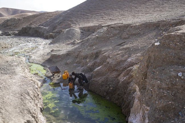 Afghanistan - Warga miskin di desa Kamar Kalagh, Afghanistan harus bertahan di tengah ancaman kekeringan. Jalan kaki 3 km melintasi padang tandus untuk mendapatkan air bersih