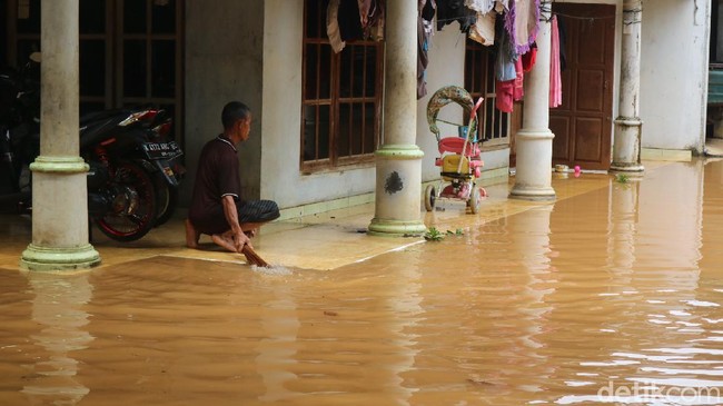 Banjir menggenangi permukiman di Desa Tegalsambi, Kecamatan Tahunan, Kabupaten Jepara, Jawa Tengah, sekitar pukul 12.00 WIB, Sabtu (11/12).