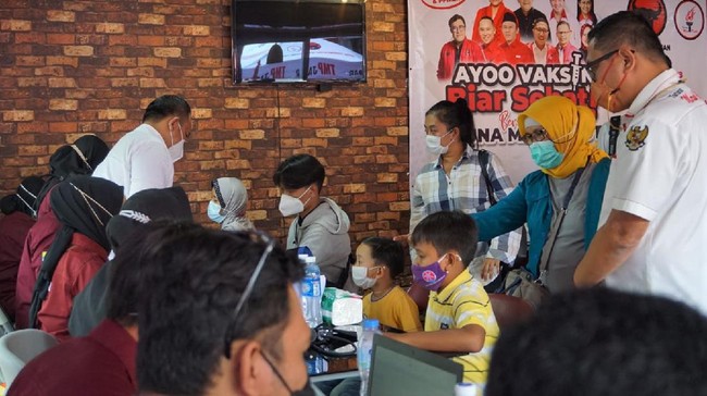 Bandung - Dewan Pimpinan Pusat Taruna Merah Putih (DPP TMP) dan DPD TMP Provinsi Jawa Barat gelar vaksinasi COVID-19 massal. Kegiatan itu digelar guna cegah virus Corona.