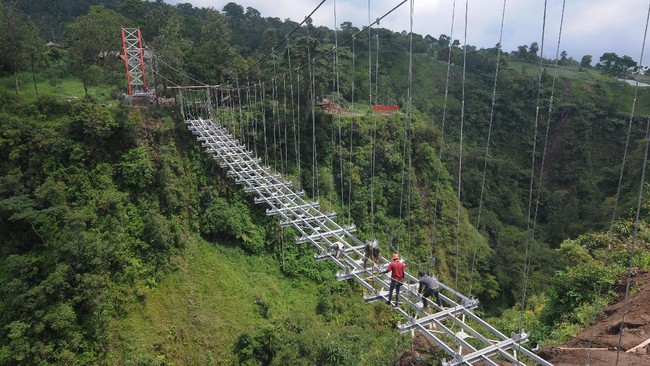 Klaten - Kampung terpencil di lereng Gunung Merapi, Dusun Girpasang, bakal lebih mudah diakses. Pasalnya sebuah jembatan gantung tengah dibangun melintasi jurang.