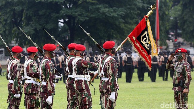 Jakarta - KASAD Jenderal TNI Dudung Abdurachman mendapat tiga brevet dari Kopassus. Ketiga brevet itu adalah brevet Komando, brevet Anti Teror dan brevet Para Utama.