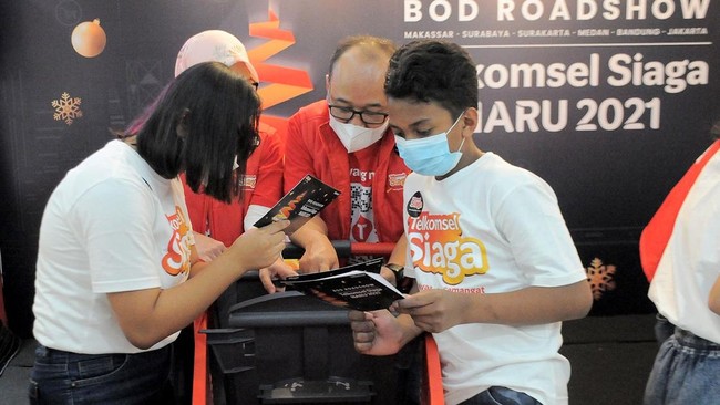 Jajaran BOD Telkomsel menggelar road show untuk meninjau dan menjalani langsung event berbagai kebahagiaan dengan anak-anak panti asuhan yang merupakan bagian dari Rangkaian Telkomsel Siaga NARU 2021 di Bandung.