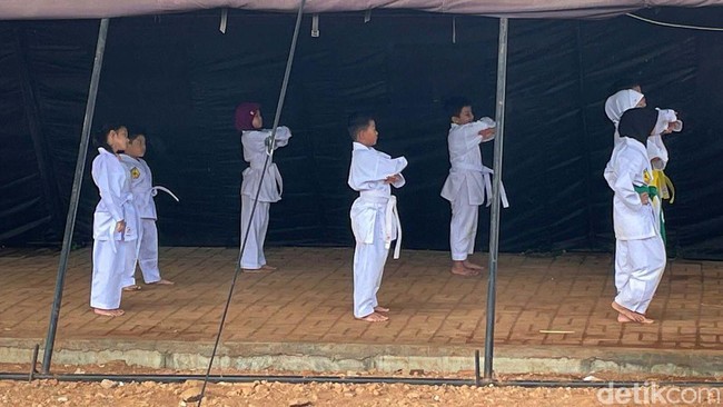 Anak-anak Berlatih Karate di Tenda Pengungsian
