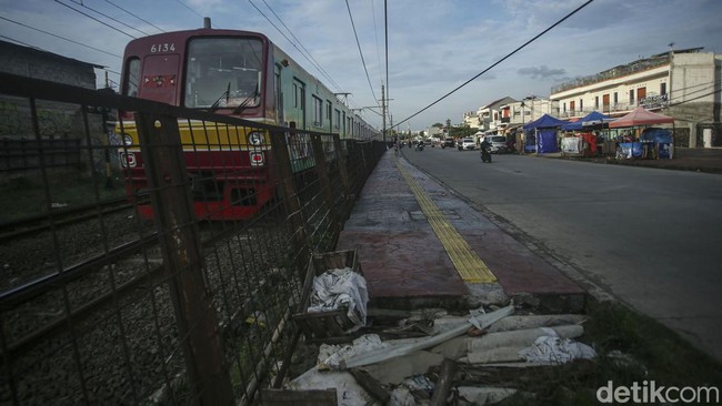 Pantauan detikcom di depan SDN Pejaten Timur 07 Pagi, tampak proyek jalan yang belum selesai. Jalan tersebut berada tepat di samping rel kereta api.