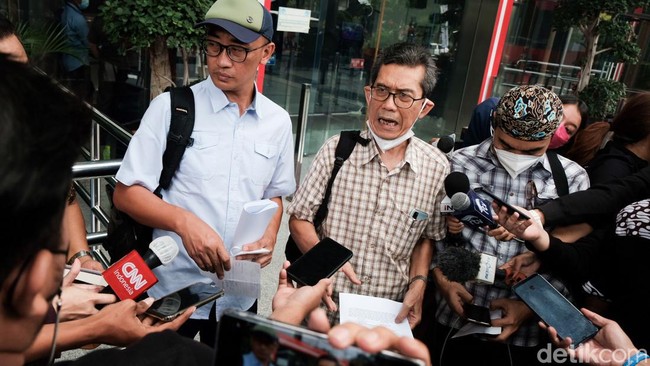 Anggota PNPK seperti Adhie Massardi dan Marwan Batubara memberi keterangan kepada wartawan usai melaporkan Ahok di gedung KPK, Jl Kuningan Persada, Jakarta Selatan, Kamis (6/1/2022). Perihal pengaduan ini, Ahok saat dimintai tanggapan enggan berbicara banyak. "Ngapain ditanggapin. Nanti dapat pemberitaan mereka. Semua yang dituduhkan sudah pernah diperiksa dan tuntas," kata Ahok ketika dihubungi detikcom secara terpisah.