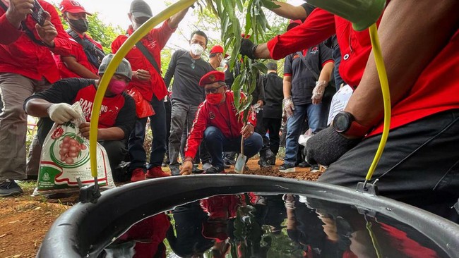 Jakarta - Aksi penanaman pohon digelar di 15 titik Daerah Aliran Sungai (DAS) Ciliwung. Kegiatan ini filakukan dalam rangka menyambut HUT PDIP yang ke-49.