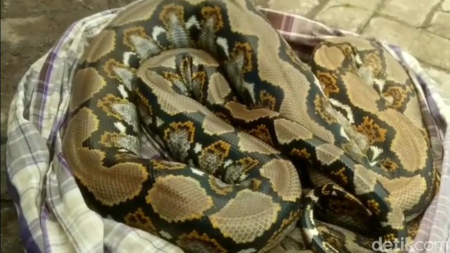Ngeri! Sanca Kembang 3 Meter Nongol saat Sungai Dibersihkan